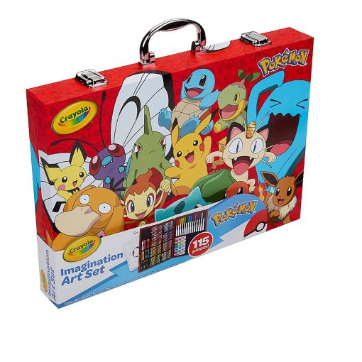 - Este estuche de arte con temática de Pokémon cuenta con 115 piezas de arte, incluyendo: 56 lápices de colores, 15 lápices de colores cortos, 28 marcadores lavables y 15 páginas para colorear.