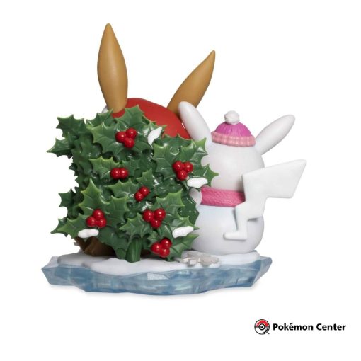 En un país de las maravillas de hielo, Eevee juega con un nuevo amigo: ¡una versión de nieve de su amigo, Pikachu! Celebra la temporada con esta figura del Pokémon Evolución que captura la diversión y la festividad del invierno.