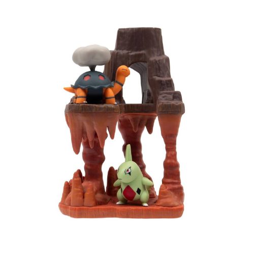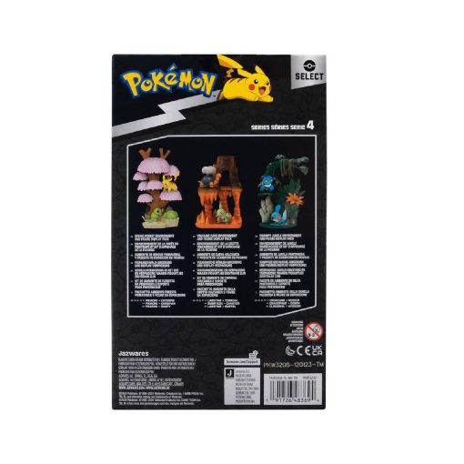 Este set de exhibición altamente detallado presenta un árbol alto con múltiples ramas. Su base está cubierta de hierba y arbustos, mientras que la parte superior ofrece muchas ramas frondosas. También incluye dos figuras de batalla Pokémon de 2 pulgadas para encontrar: Figuras.