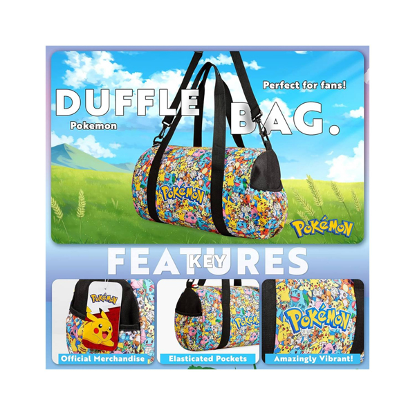 - Tu fan de Pokemon estará listo para cualquier cosa con esta genial bolsa de viaje Esta bolsa de fin de semana es la bolsa perfecta para deportes, PE, viajes o pernoctaciones. Hay una gama de diseños geniales para elegir, ver imágenes para más detalles