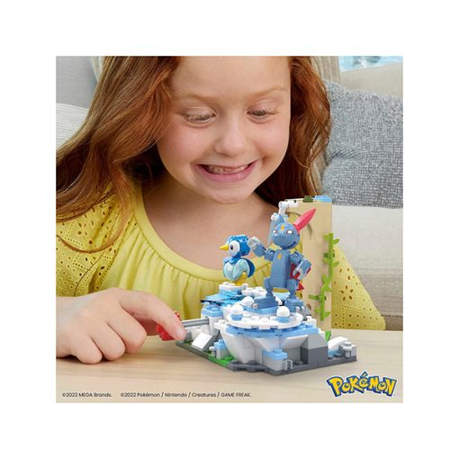 Incluye figuras de Piplup y Sneasel y un ambiente de invierno para construir