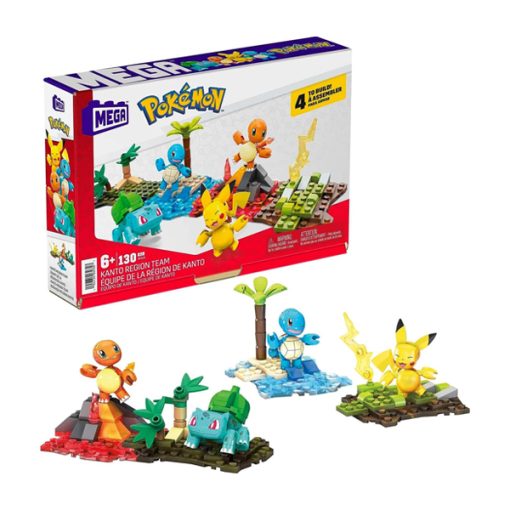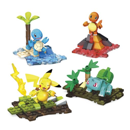 - El conjunto incluye Pikachu, Squirtle, Charmander y Bulbasaur más stands de entorno edificables