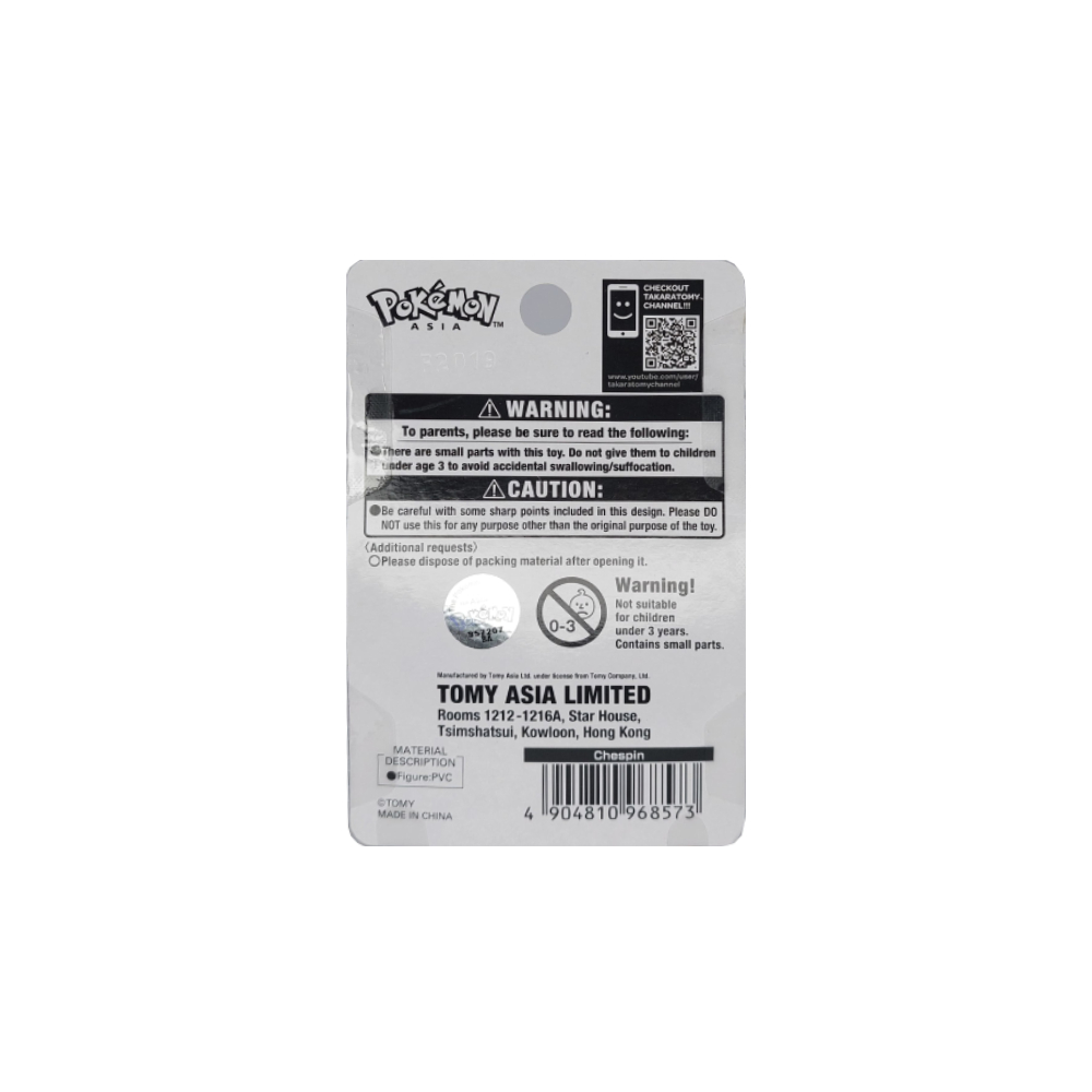 Descripción: Adorable figura coleccionable de Chespin, el Pokémon erizo inicial de la región de Kalos, en versión exclusiva para Asia de Takara Tomy. Esta figura está hecha de materiales de alta calidad y presenta detalles precisos que capturan la ternura y el encanto de este popular Pokémon.