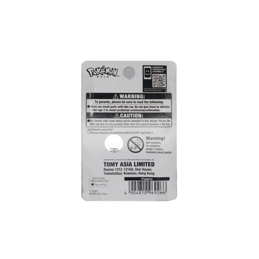 Descripción: Adorable figura coleccionable de Popplio, el Pokémon foca acuático inicial de la región de Alola, en versión exclusiva para Asia de Takara Tomy. Esta figura está hecha de materiales de alta calidad y presenta detalles precisos que capturan la ternura y encanto de este popular Pokémon.