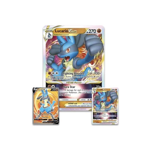 - 1 tarjeta promocional grabada con Lucario VSTAR