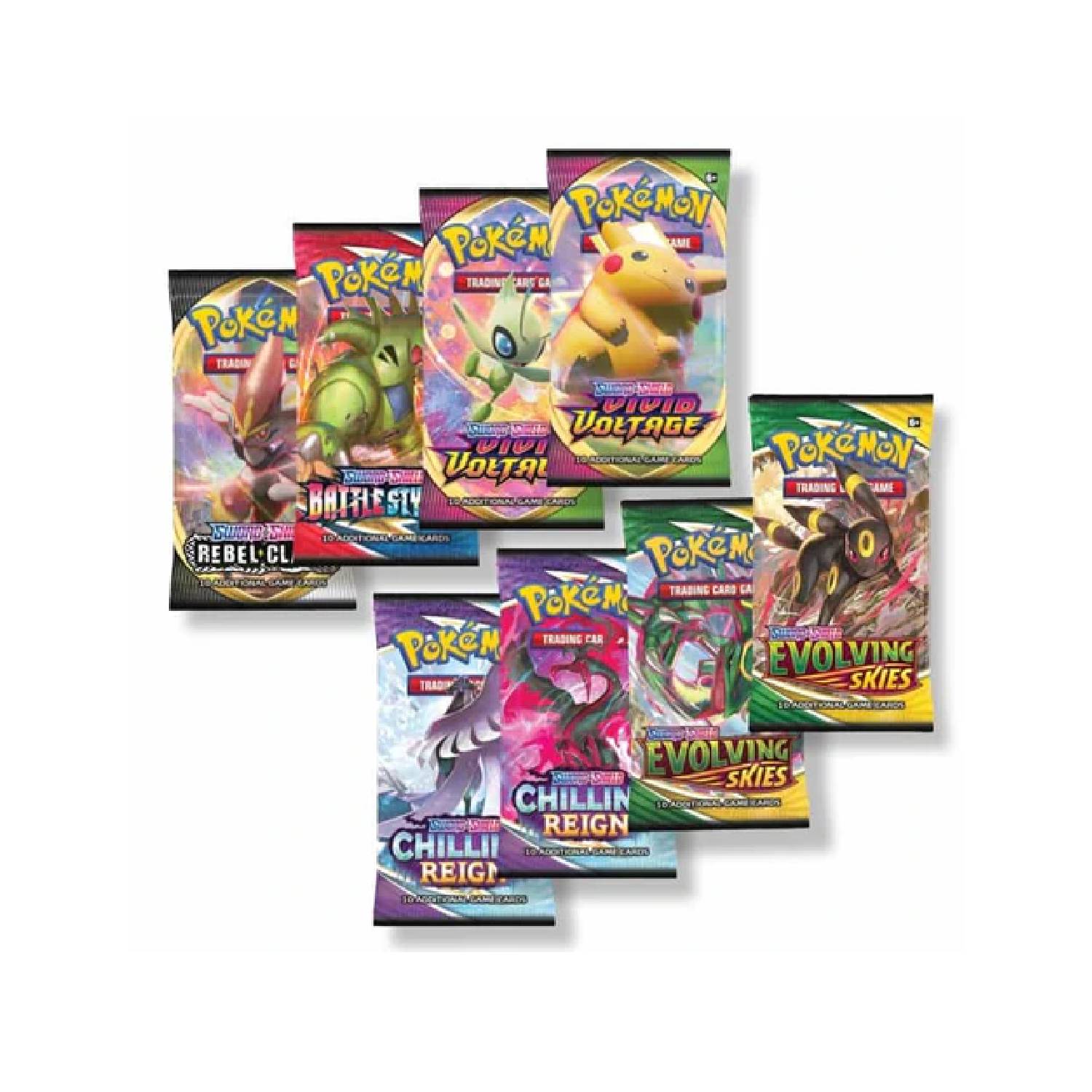 - 8 paquetes de refuerzo de JCC Pokémon.