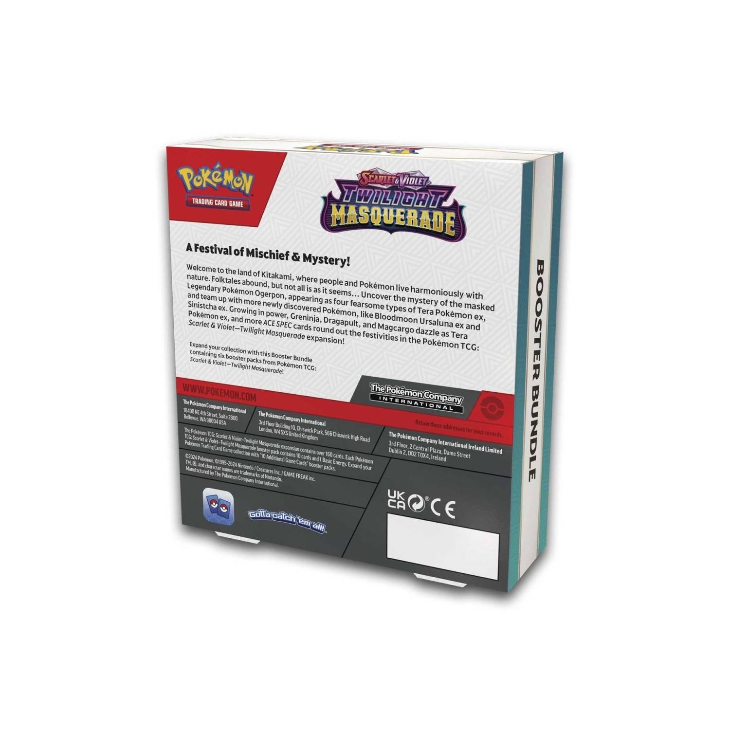 - Incluye 6 paquetes de refuerzo de Pokémon TCG: Scarlet y Violet—Mascarada del Crepúsculo