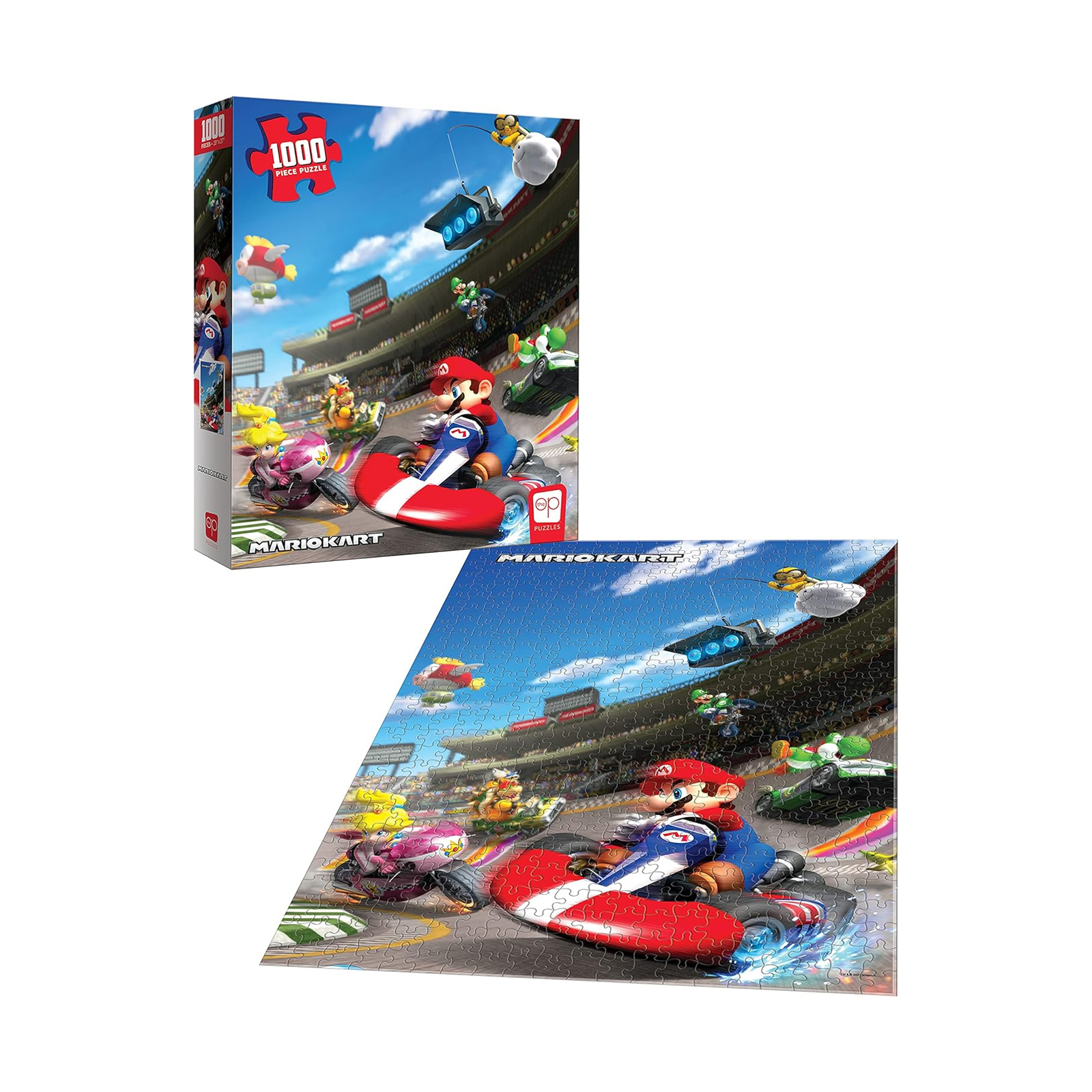 ¡Prepárate para la carrera con el Rompecabezas Mario Kart de 1000 Piezas! Une a tu equipo de carreras favorito de la serie de videojuegos Mario Kart de Nintendo en este emocionante desafío.