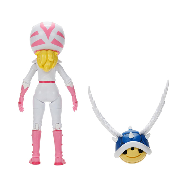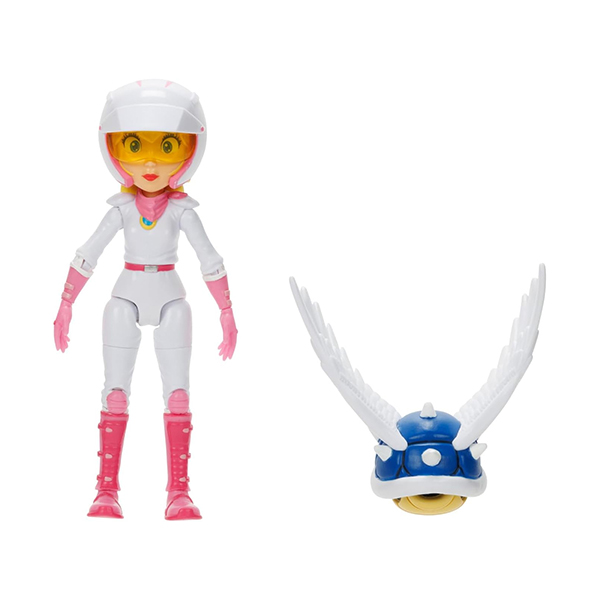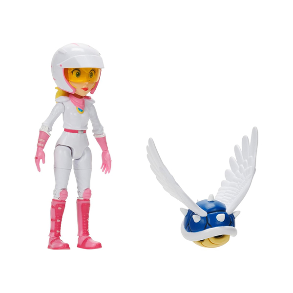 - Colecciona tus personajes favoritos en la serie The Super Mario Bros. Movie de 5 pulgadas. La figura de Peach en su traje de motocicleta está inspirada en la película y viene con detalles de primera calidad que incluyen ojos acrílicos realistas y 16 puntos de articulación. Peach viene con un accesorio Spiny Blue Shell, todo exhibido en una caja con ventana.