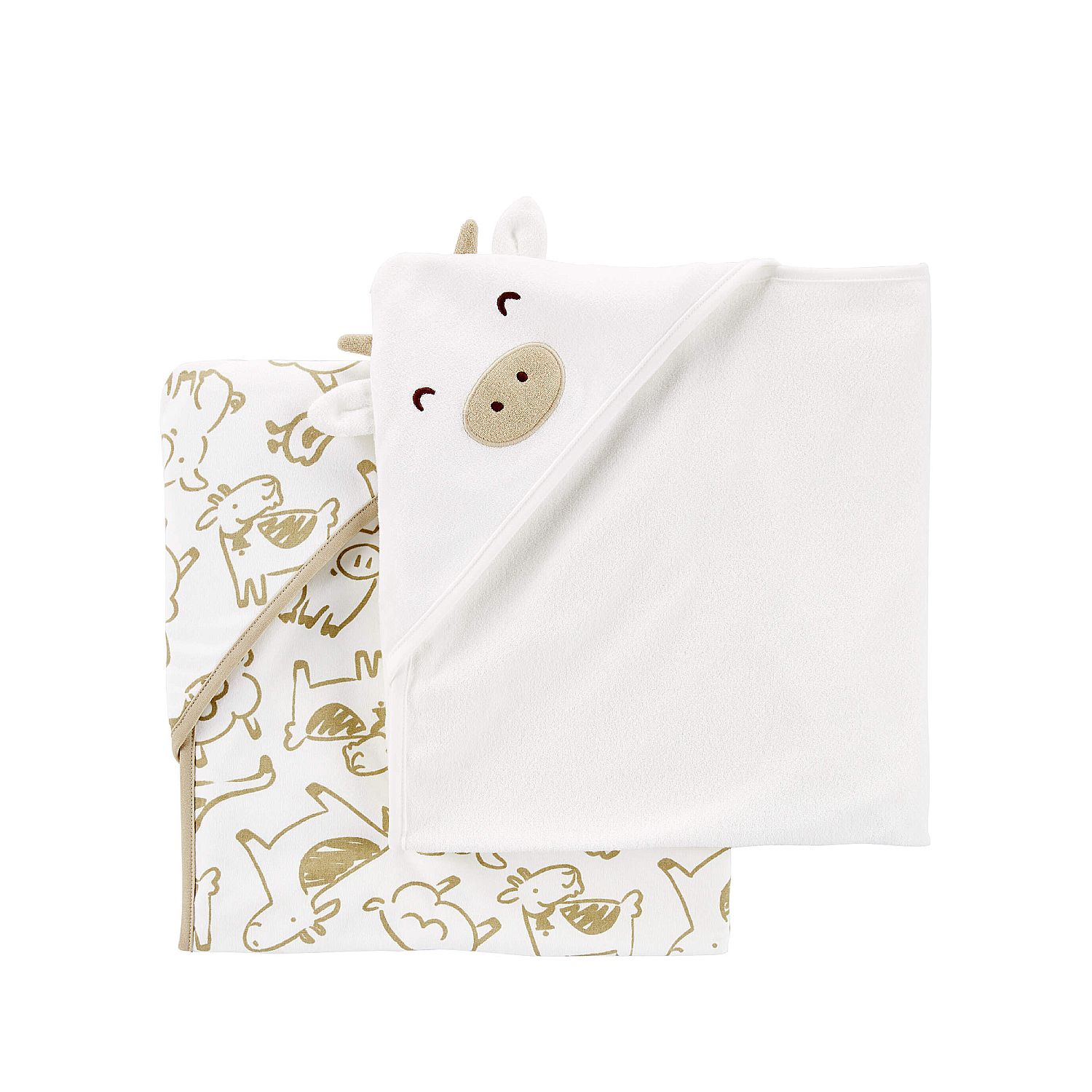 Perfectas para después del baño, estas dulces toallas están confeccionadas en felpa absorbente y cuentan con lindas capuchas con diseño de vaca.